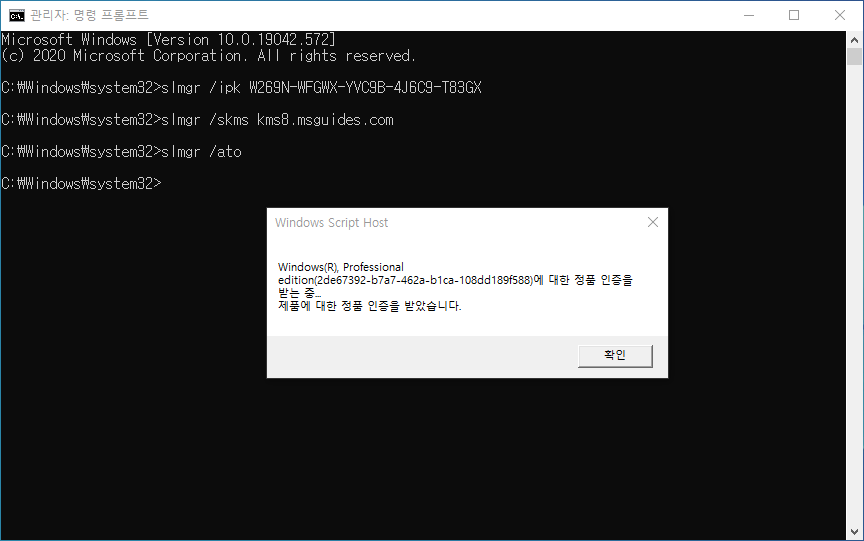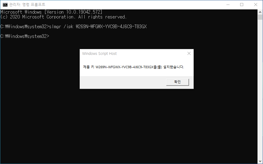명령프롬프트에서 제품키 인증 제거 및 제품 인증 방법