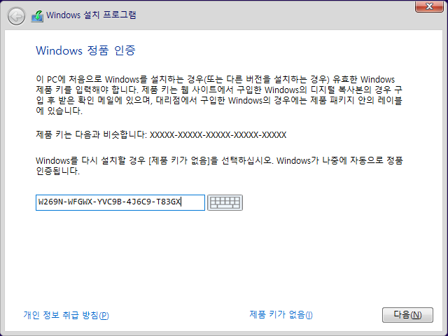 필요한 key를 적어 놓으세요. 여기서는 Windows 10 Pro 키를 예로 들겠습니다.