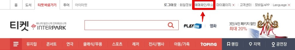 내가 알려줄게 인터파크를 취소하고 재예약하는 방법은 인터파크를 먼저 접속합니다.