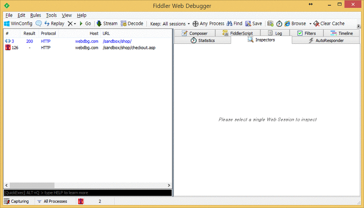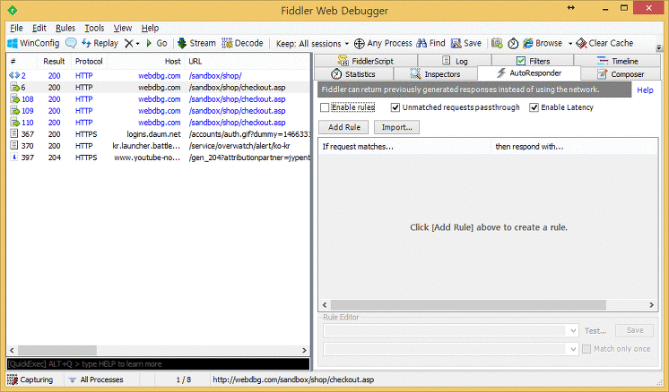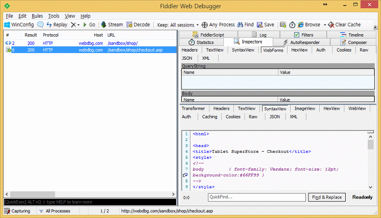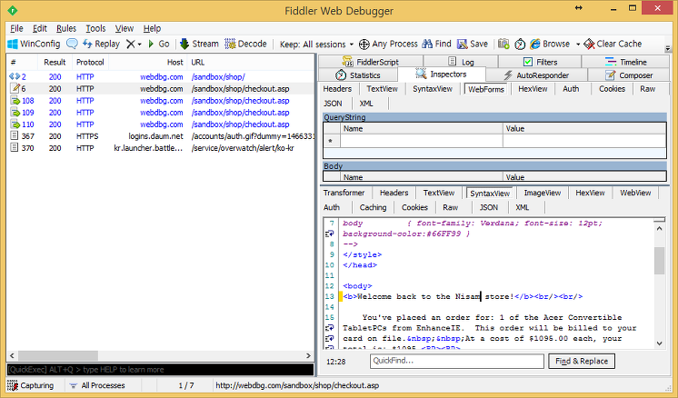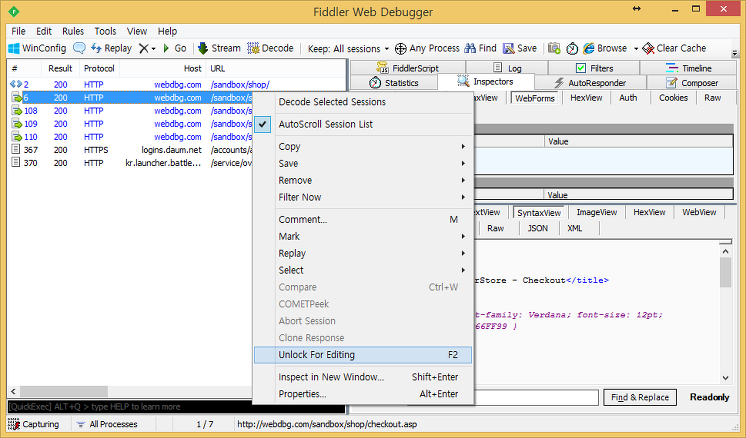 실제로 Breakpoint 기능을 사용해보기에 Fiddelr에서 제공하는 Sandbox 웹 사이트(http://webdbg.com/sandbox/shop/)에서 테스트해본다.