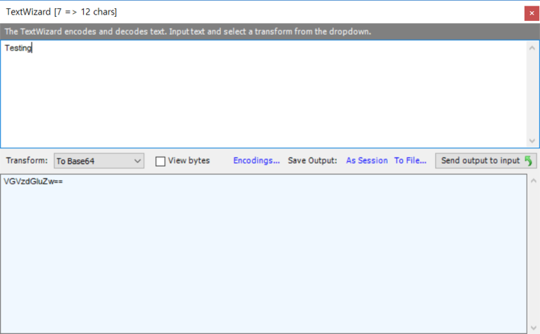 Testing 이라는 문자열을 Base64로 암호화해보니 아주 잘 된다.