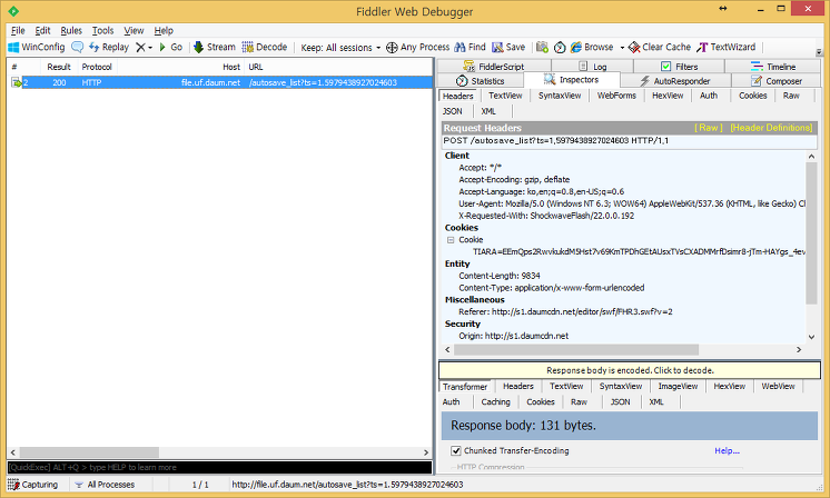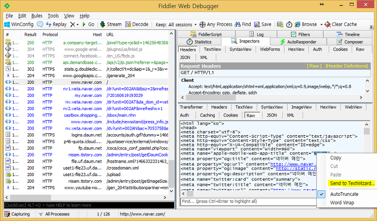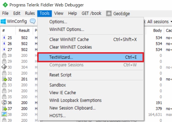 웹에서는 인/디코딩을 하는 경우가 많은데, Fiddler는 인/디코딩 하는 기능도 제공한다.