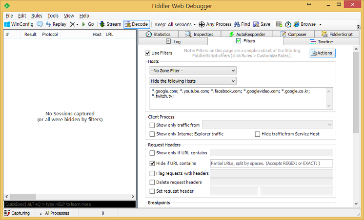 우리는 분석을 하면서 페이스북을 하거나 유튜브를 본다. 혹은 특정 서비스를 분석할 때 특정 도메인을 거를 필요가 있다.(예를들어 페이스북의 업데이트를 위한 polling 리퀘스트 들..)