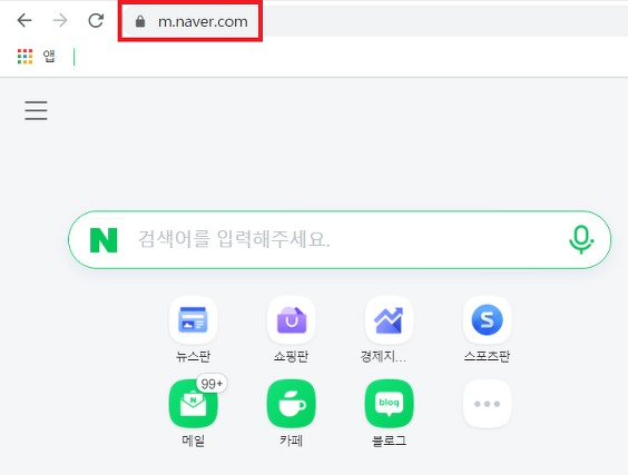 네이버 사이트에 접속해보면, URL이 m.naver로 접속되는 것을 확인할 수 있다.