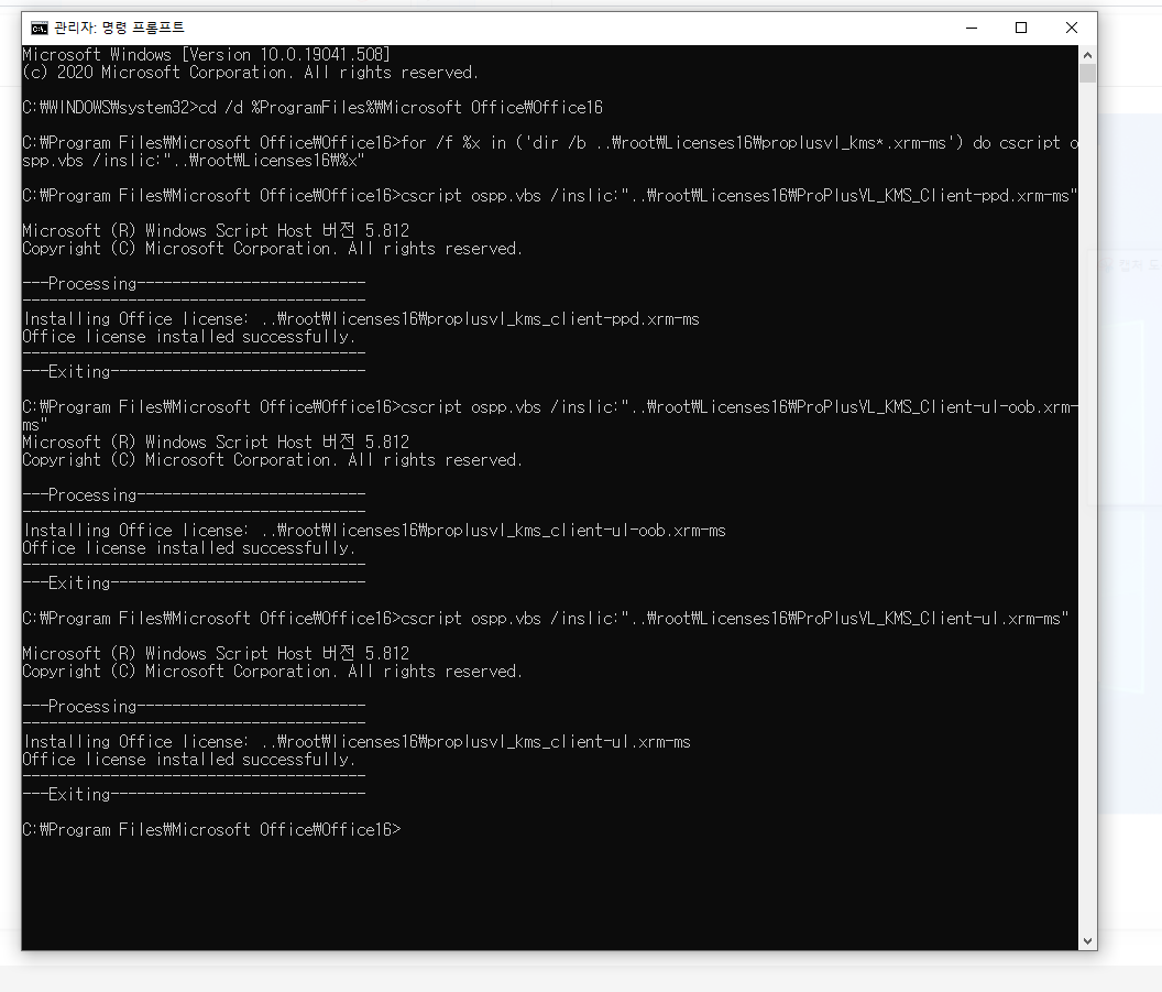 인증툴이나 크랙없이 오피스 인증하는 방법(2021, 2019, 2016, 365)