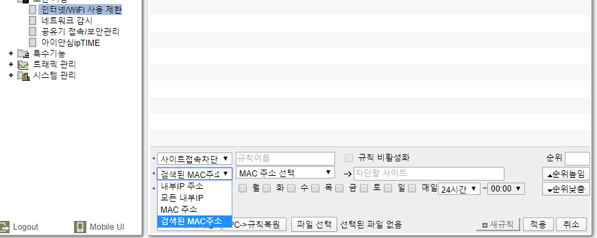 3) 접속을 제한시킬 PC 혹은 폰의 MAC 주소 선택