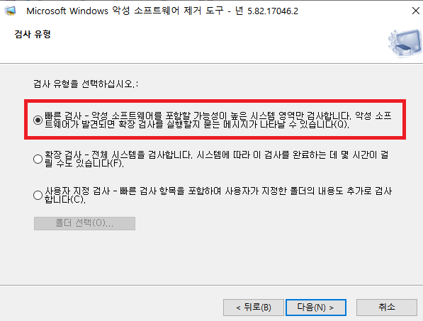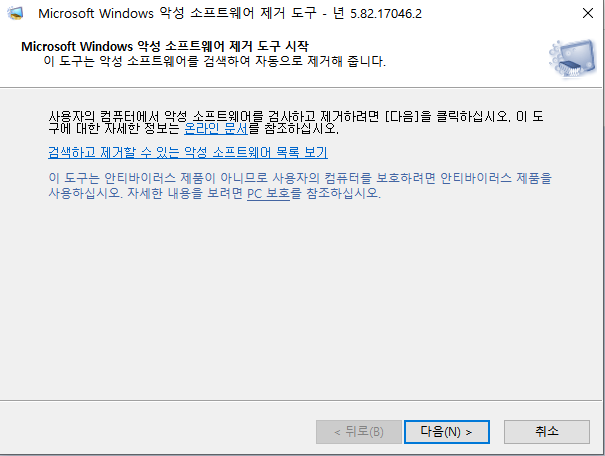 Microsoft Windows 악성 소프트웨어 제거 도구가 시작이 됩니다.