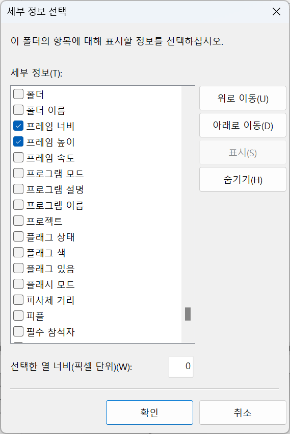 이제 이미지 파일의 "사진 크기" 정보뿐만 아니라 동영상 파일의 "프레임 너비" 및 "프레임 높이" 또한 파일 탐색기를 통해 손쉽게 확인할 수 있습니다.