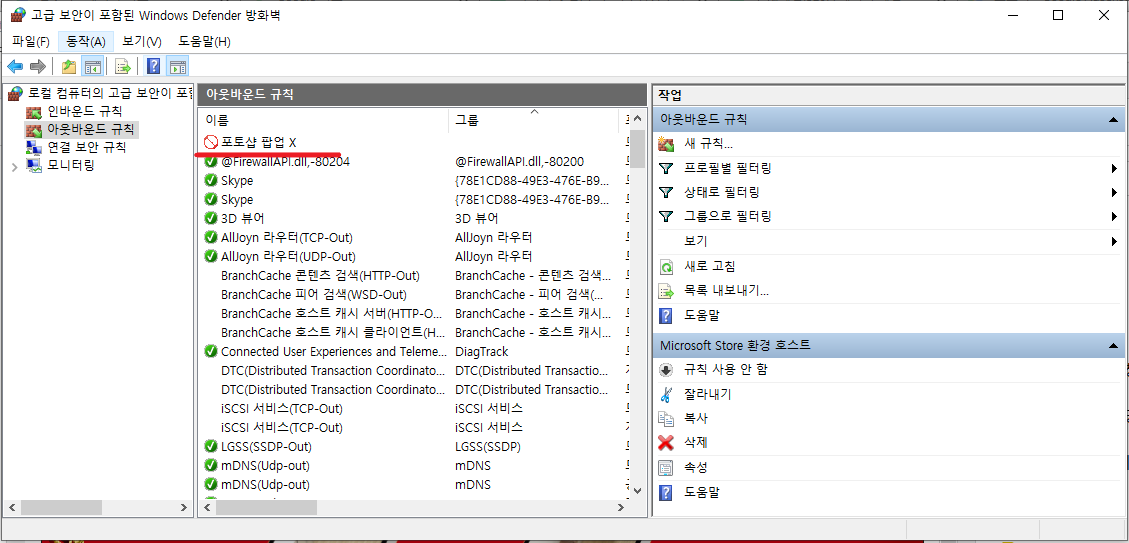 1. [고급 보안이 포함된 Windows Defender 방화벽] 진입