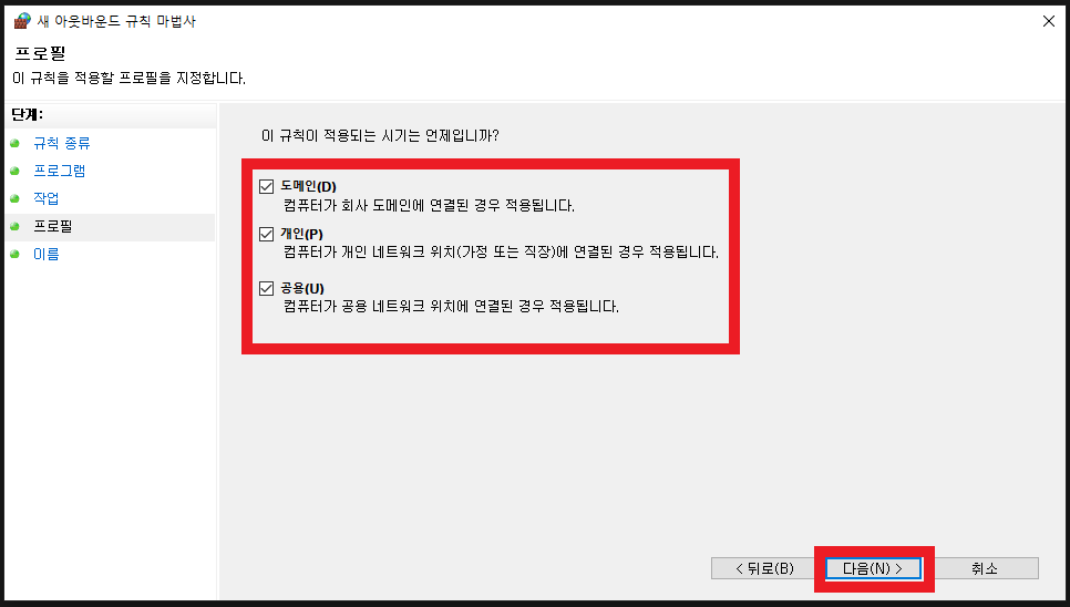 5. 연결차단 및 규칙적용 범위
