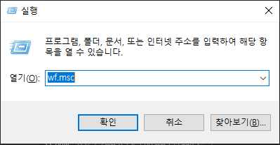 wf.msc 를 입력해서 [고급 보안이 포함된 Windows Defender 방화벽] 으로 진입해줍니다.