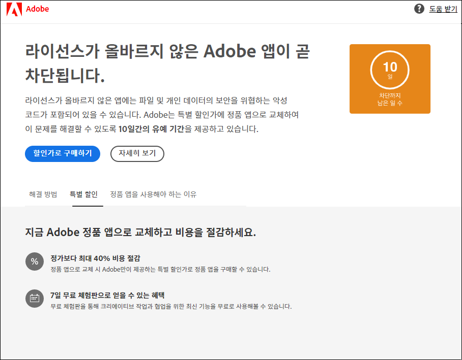 라이선스가 올바르지 않은 Adobe 앱이 곧 차단됩니다.