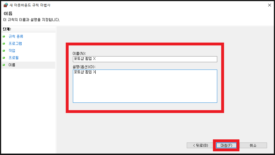 6. 규칙 이름작성 및 종료