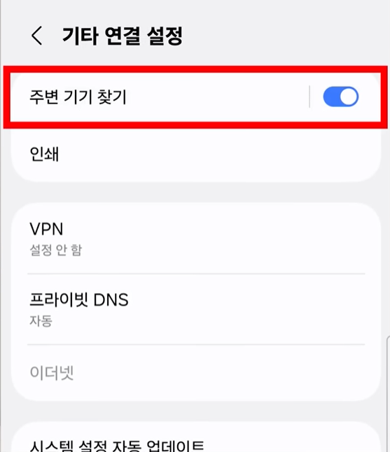 2. 삼성 '주변 기기 찾기' 기능 끄기