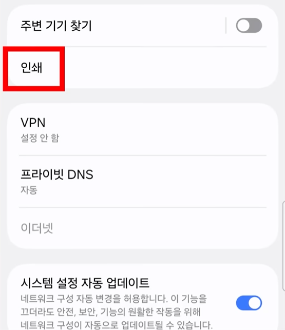 3. '기본 인쇄 서비스' 기능 끄기