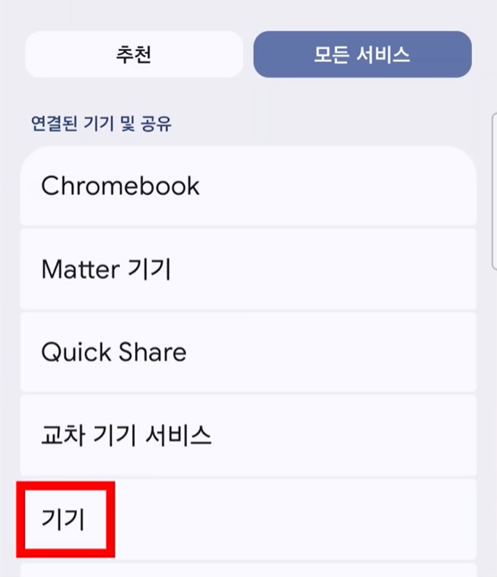 3. '모든 서비스' 탭을 누른 후, 아래쪽 '기기' 메뉴로 들어갑니다.