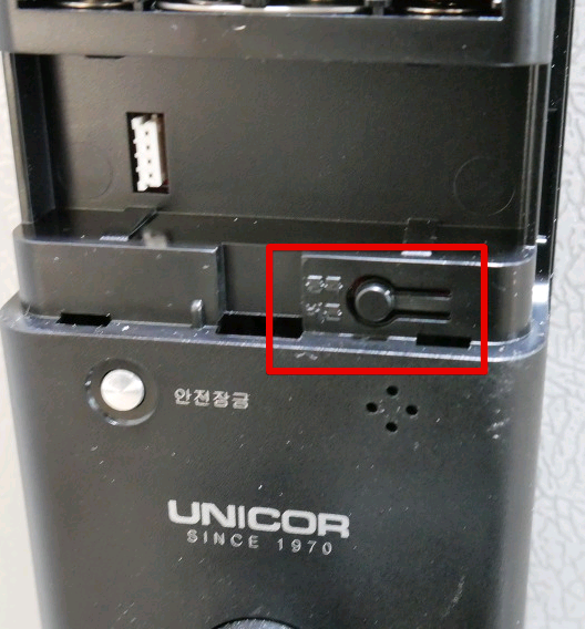 먼저 도어록의 사용 설명서를 찾아야합니다. 모델명을 알고 있거나 사용 설명서가있는 경우 다음 단계로 진행하십시오. 도어록의 모델명을 모를 경우 도어록 내부의 제품명과 모델명을 확인하여 모델명을 찾으십시오. 저는 Unico Hi-Tech의 UN-3150S라는 모델입니다.