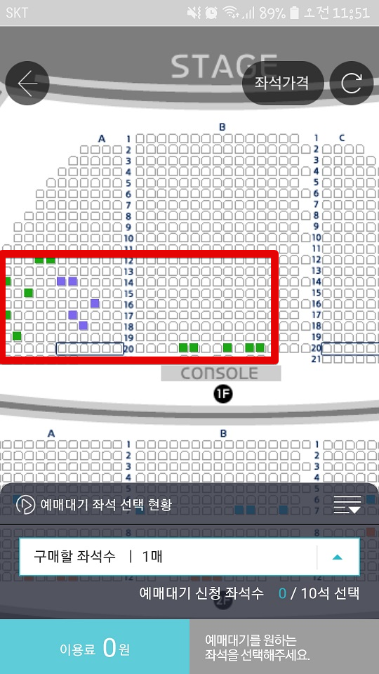 나는 한 자리를 클릭하고 좌석 선택 버튼을 눌렀다.