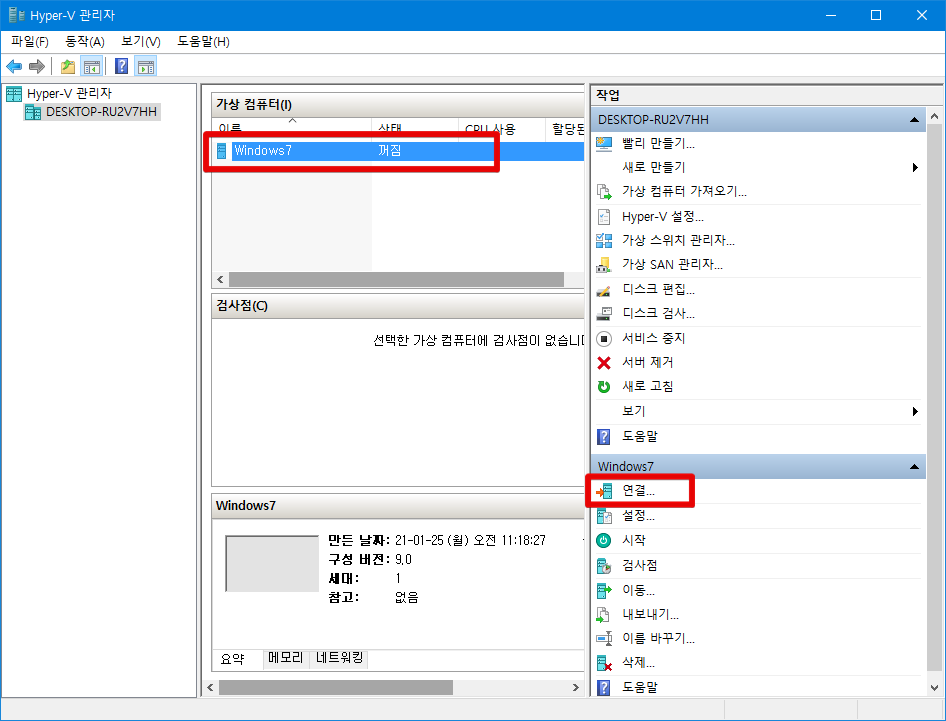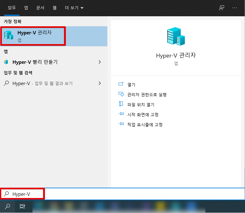 Hyper-V 관리자를 실행합니다.