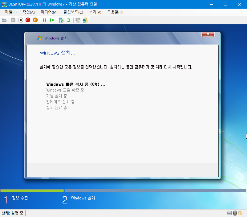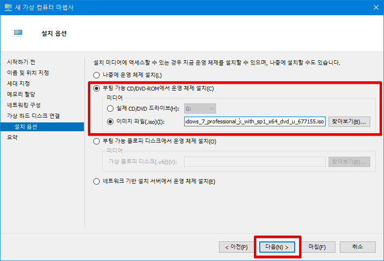 모든 Hyper-V 구성이 완료되면 지금 Windows 설치를 시작하겠습니다.